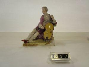 Figura su base rettangolare a decorazione policroma, con dorature sparse, di giovane suonatore. Il giovane è seduto e colto nell'atto di suonare il violoncello. Il modello spetta a Johsnn Christian Wilhelm Beyer, capomodellatore della fabbrica durante gli anni '60; fu eseguito in diverse misure a partire dal 1765 circa e fa parte di una serie di sette figure di musicanti.