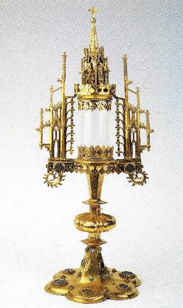 - NOTIZIE STORICO CRITICHE La datazione dell'ostensorio al terzo quarto del Quattrocento è suggerita dalla presenza della moneta riconducibile a Francesco Sforza (1450-1466) (Zastrow 1993).