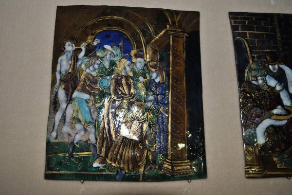- NOTIZIE STORICO CRITICHE La placchetta in esame fa parte di una serie di dodici placchette con scene della Passione di Cristo. L'autore limosino si è ispirato alle xilografie della Passione di Albrecht Durer pbblicate tra il 1497 e il 1511. Sulla didascalia dell'opera è proposta, in modo dubitativo, l'attribuzione al Maestro del polittico di Mesnil-sous-Jumièges.