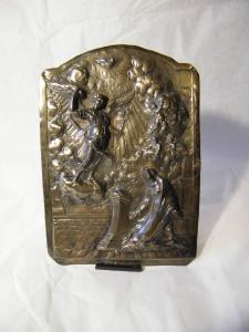 - NOTIZIE STORICO CRITICHE Si tratta, molto probabilmente, della parte figurata di una pace. Sono andate perdute la cornice e l'impugnatura. Il punzone territoriale di Venezia (un aplustre con le assi flesse), presente sul bordo destro, indica un'esecuzione a Venezia dopo il 1812, ma comunque entro i primi decenni dell'Ottocento, vista l'impostazione ancora fortemente settecetesca della scena.