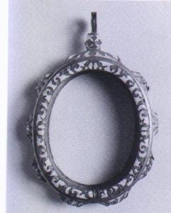 Cornice di reliquiario a capsula con otto lobi sui bordi, decorazione a smalto cloisonnè.