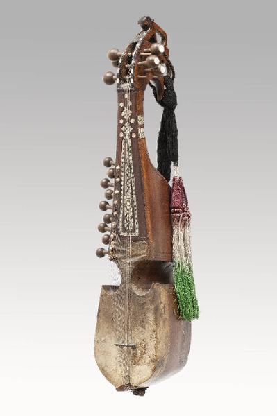 Il Rabab, liuto a pizzico afgano, ha cassa armonica e manico ricavati da unico pezzo; cavigliere curvato all'indietro con sei piroli con pomelli decorati in madreperla; lungo il manico nove piroli che tendono le corde di simpatia. Il fondo della cassa armonica presenta uno spigolo a forma di carena di nave lungo la linea longitudinale. Decorazioni geometriche in madreperla su manico, cavigliere, piroli, fondo cassa armonica.