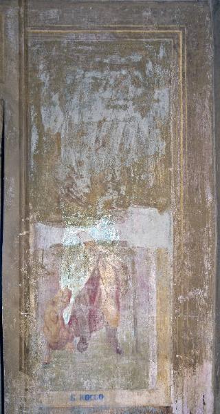 L'affresco, che si presenta in uno stato molto frammentario, mostra San Rocco in posizione eretta entro una specchiatura rettangolare; accanto a lui sta il cane con la pagnotta in bocca.