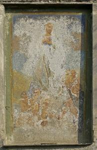 In una nicchia rettangolare la Madonna, in posizione eretta e con le mani al petto, sale al cielo accompagnata da un gruppo di angioletti.