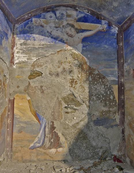 - NOTIZIE STORICO CRITICHE Il frammento ricalca, probabilmente, un preesistente affresco di origine settecentesca che si intravede in parte in corrispondenza della parte inferiore del corpo di Gesù.