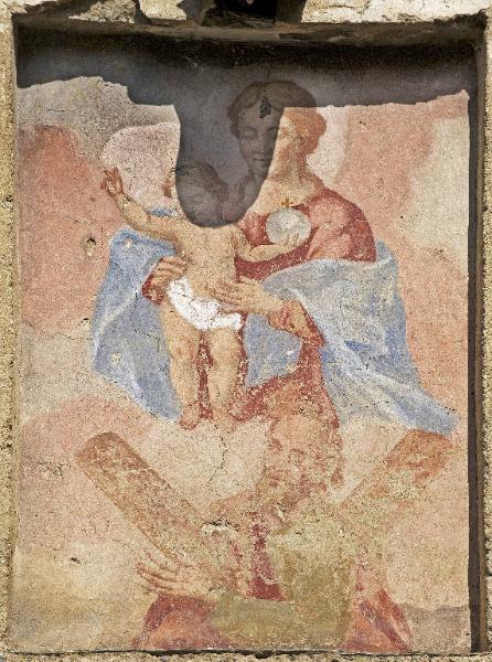 La Madonna, che tiene Gesù Bambino in piedi, su nuvole, appare a Sant'Andrea, che si trova in basso, al centro.