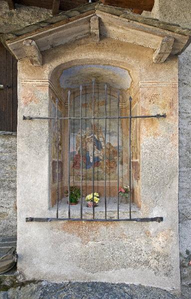 La cappella, addossata al fronte ovest di un fabbricato rurale, presenta sulle pareti interne della nicchia la raffigurazione della Deposizione di Gesù dalla croce, sulla parete di fondo, San Pietro, a sinistra, Sant'Abbondio, a destra e la colomba dello Spirito santo, sulla volta.