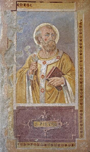 In una specchiatura rettangolare compare il busto di San Pietro con un libro in una mano e le chiavi nell'altra.