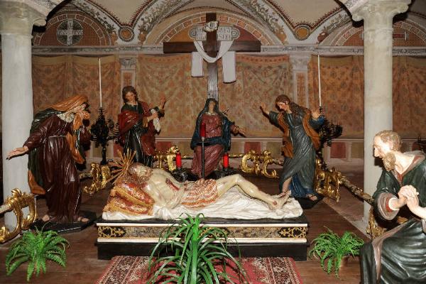 All'interno dello scurolo dell'Oratorio dei disciplini (corpo più antico della chiesa), separato dalla navata da un'apertura chiusa da una cancellata in ferro, fa mostra di sé il Compianto sul Cristo morto. Un gruppo ligneo formato da sette figure scolpite a tuttotondo: il Cristo deposto attorniato (da sinistra a destra) da Nicodemo, Maria di Cleofa, l'apostolo Giovanni, Maria addolorata, Maria Maddalena e Giuseppe d'Arimatea.
