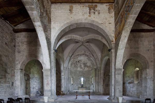 - NOTIZIE STORICO CRITICHE L'analisi complessiva del ciclo cristologico ha permesso di individuare quattro distinte fasi realizzative, tutte comunque circoscrivibili, sul piano della cronologia, nell'arco di tempo piuttosto limitato di circa un quarantennio.\nLa prima fase corrisponde alle scene che, inziando in controfacciana proseguono sulla parete sinistra, della Annunciaizone, Visitazione, Natività (che include altri episodi quali l'Adorazione dei pastori e il Primo bagno di Gesù Bambino), Adorazione dei Magi, Strage degli innocenti. L'elemento distintivo di questa serie di affreschi è l'impaginazione illusionistico spaziale, che definisce uno spazio "artificiale" entro il quale vengono ambientate le varie scene, la cui matrice culturale è decisamente estranea all'ambito lombardo, mentre trova puntuali riscontri in area romana e assisiate nella seconda metà del Duecento. Ciò trova conferma in alcuni puntuali confronti individuati tra l'Annunciazione qui raffigurata e gli affreschi della decorazione absidale di Santa Maria in Vescovio presso Roma, oppure tra la Natività e i clipei di Santa Maria Maggiore a Roma. In generale il rapporto figure-architettura individuabile nelle cinque scene di Almenno trova relazioni con le testimonianze della scuola romana pre-cavalliniana. I contatti con il mondo centro italiano suggeriscono, quale possibile committente di questa prima decorazione, il nome del vescovo di Bergamo Roberto de' Bonghi (residente a Roma sino al 1289, vescovo di Bergamo dal 1291 al 1294).\nLa seconda fase, cronologicamente assegnabile intorno ai primissimi anni del XIV secolo, comprende sei episodi che si svolgono su due ordini, sempre sulla parete sinistra: Fuga in Egitto, Presentazione al Tempio, Disputa coi dottori, Battesimo, Nozze di Cana, Cena in casa del Fariseo, Entrata di Cristo a Gerusalemme. Qui l'impaginazione compositiva è più semplice, rinunciando a ogni forma di inquadratura illusionistica; l'importanza assegnata alle figure, rispetto al loro ordinamento parattitco sulla parete, conferma che l'anonimo esecutore di questo settore della decorazione aveva una più alta concezione dell'immagine, come rappresentazione in sé, generatrice di uno spazio autonomo e autosufficiente a livello narrativo. E' stato giustamente riscontrato qui un orientamente classicheggiante che si sostanzia in un ritmo pausato, in solenni gesti delle figure, in immagini di appagata bellezza che trovano confronti e assonanze con altri cicli lombardi, da quello della chiesa di San Zenone all'Arco di Brescia a quello del Maestro di S. Cassiano a Lodi. E' pur vero, però, che si rintracciano anche influenze dalla cultura lagunare e adriatica, in particolare per certi spunti di bizantinismo e giottismo "riminese".\nLa terza fase realizzativa, ancora confinata nel tardo Duecento, corrisponde alle scene cristologiche presenti sulla parete destra della navata, che incominciano dall'arco trionfale con una monumentale Ultima cena e proseguono in una serie di cinque episodi: Bacio di Giuda, Giudizio di Pilato, Cristo deriso, Flagellazione, Salita al Calvario. Ogni scena si staglia su un fondo in fonto marmo rossastro (rosso pompeiano), determinando così una sorta di continuità narrativa interna. Questo modulo impaginativo, di chiara matrice arcaica, presuppone una concezione atermporale della storia sacra, rappresentata priva di ambientazione per sottolinearne il portato simbolico. Sono stati individuati, in questa serie, legami con la cultura assistate (per via della comune matrice "bizantina") e in particolare con l'ambiente di Jacopo Torriti e con i decoratori della cappella del Sancta Sanctorum a Roma. Sempre per i riferimenti centro italiani, in continuità con la prima fase dell'intervento pittorico, è stato supposto che il committente potesse essere Giovanni da Scanzo, già collaboratore e uomo di fiducia di Roberto de' Bonghi e suo successore come vescovo di Bergamo (1295-1309)\nLa quarta fase è anche l'ultima in ordine di tempo, sopraggiunta probabilmente dopo una pausa dei lavori di decorazione del cantiere. Pur avviando nella parte alta, con la Crocifissione, la Deposizione della croce e la Deposizione nel sepolcro, la Resurrezione, si sviluppa soprattutto nelle scene dell'ordine inferiore della parete destra: Marie al sepolcro, Noli me tangere, Incredulità di Tommaso, Spartizione delle vesti, Congedo dagli apostoli, Pentecoste e Giudizio universale. Lo schema impaginativo è essenziale, quasi senza soluzione di continuità tra un episodio e l'altro; ciò a vantaggio della narrazione, che si serve anche di un "espressionismo caricato e patetico" e di una attenta descrizione del dato naturale, elementi che tradiscono una vocazione più popolare di queste pitture, ormai lontane dalla matrice intellettuale che caratterizzava le fasi precedenti. La datazione di questo intervento, forse ascrivibile a una committenza francescana, va circoscritta intorno al secondo decennio del Trecento.