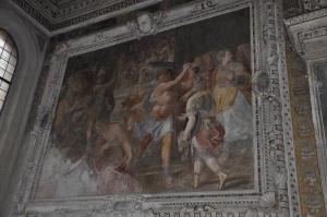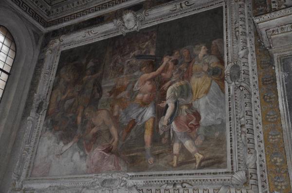 - NOTIZIE STORICO CRITICHE Di origine genovese, figlio di Antonio, anch'egli pittore come del resto era anche il fratello Andrea, con il quale collaborò nei primi anni di attività, Ottavio Semino compì almeno due soggiorni in area milanese (il primo dei quali avvenne dalla fine degli anni sessanta al 1573, il secondo prese avvio nel 1579 e si concluse con la morte nel 1601.), dapprima al servizio di eminenti personalità come Tommaso Marino, quindi impegnandosi nella decorazione della controfacciata della Certosa di Pavia (1566-1567), della cappella Fiorenza nella chiesa di San Maurizio al Monastero Maggiore (1571-1573), delle cappelle Bossi (1572) e Brasca (1575-1576) nella chiesa di Sant'Angelo. Nell'ottavo decennio del Cinquecento il pittore era dunque entrato nel giro delle commesse della Milano "carliana", come del resto testimoniano le lodi nei testi contemporanei, in particolare da parte del Lomazzo, che nei Rabisch (1589) gli dedica un intero sonetto definendolo tanto "perfetto nella pittura" da superare "gli altri pittori della città". Dotato di un carattere tutt'altro che conciliante (pare fosse stato allontanato da Savona in seguito a un omicidio e le fonti ricordano i suoi costumi "dissoluti e corrotti"), Semino promosse una pittura che recupera i modelli dei grandi maestri del Rinascimento e in particolare di Raffaello (apprezzati durante un viaggio a Roma e grazie alle testimonianze degli allievi presenti a Genova, oltre allo studio delle stampe di Marcantonio Raimondi), rileggendoli senza alcuna forzatura nè intento drammatico. La prima formazione del pittore, però, avvenne a Genova con Luca Cambiaso. La tendenza a "illustrare" più che a coinvolgere emotivamente lo spettatore si nota anche nella cappella di san Giovanni Battista, interamente dedicata al racconto delle gesta del santo, che si snodano sulle due pareti laterali e sulla volta. Malgrado questo intervento cada a ridosso dell'inizio del secondo soggiorno milanese del pittore, quindi in una fase piuttosto avanzata della sua attività, è stato osservato come Semino recuperi, citandolo in modo preciso, il particolare di uno degli armigeri presenti in un affresco eseguito anni prima dal padre Antonio Semino per la chiesa di Sant'Andrea a Genova. Si avverte, dunque, la tendenza a riproporre soluzioni compositive mediate da altri maestri, segno di una generale mancanza di invenzione che accompagnerà Ottavio per tutta la sua attività, accentuandosi ulteriormente negli ultimi anni.