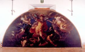 - NOTIZIE STORICO CRITICHE Il dipinto, di forma lunettata, fu eseguito su commissione della famiglia Gallio per la cappella di loro patronato nella distrutta chiesa domenicana di S. Giovanni in Pedemonte di Como, dove faceva pendant con la tela del Morazzone raffigurante la Caduta degli angeli ribelli, pure appartenente alle collezioni dei Musei Civici di Como. \nLa cappella del cardinale Tolomeo Gallio in S. Giovanni Pedemonte (seconda a sinistra) fu progettata da Giovanni Antonio Piotti detto il Vacallo (Della Torre, 1989, 13).\nPer quanto riguarda il dipinto esaminato, la sua tradizionale attribuzione a Carlo Francesco è stata negata dalla Grandi in favore del padre Panfilo (Grandi, 1970), e nuovamente riaffermata da Mina Gregori (Gregori, 1962) e da Marco Bona Castellotti (Bona Castellotti, 1981), che ha collocato l'opera intorno al terzo/quarto decennio del Seicento sulla base del raffronto con la tela con S. Marta di Carlo Francesco conservata nel Seminario Arcivescovile di Venegono (deposito della Pinacoteca di Brera). Rispetto a questa, lo studioso rileva nel quadro comasco un'accentuazione dei valori atmosferici conforme all'evoluzione dello stile nuvoloniano dopo il 1640.