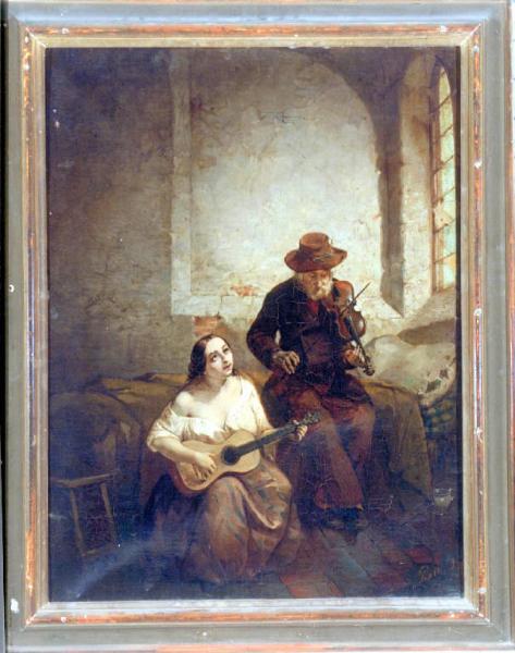 - NOTIZIE STORICO CRITICHE Come ha annotato l'estensore della scheda cartacea: "il dipinto è opera del pittore lombardo, autore di paesaggi, di soggetti sacri e di genere, maturato alla scuola del Tallone, ma non immemore di certi interni di D. Induno. Il quadro si inserisce nella produzione intimistica del Piatti, come altre sue opere che recano titoli del repertorio macchiettistico tardoromantico, ad esempio "Stornellando" (1907), "Al focolare", "Il Cantuccio dei sogni" (1927)".