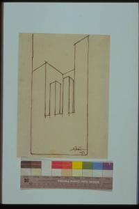 - NOTIZIE STORICO CRITICHE Il disegno fa parte della serie "dinamismi architettonici" chiamati così dal poeta futurista Escodamè in occasione della mostra da lui ordinata al Broletto di Como nel settembre-ottobre 1930. Si tratta di vere astrazioni grafiche, volumi senza una precisa destinazione, disegnati a solo contorno e assolutamente privi di decorazioni.