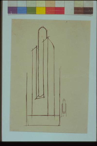 - NOTIZIE STORICO CRITICHE Il disegno fa parte della serie "dinamismi architettonici" chiamati così dal poeta futurista Escodamè in occasione della mostra da lui ordinata al Broletto di Como nel settembre-ottobre 1930. Si tratta di vere astrazioni grafiche, volumi senza una precisa destinazione, disegnati a solo contorno e assolutamente privi di decorazioni.