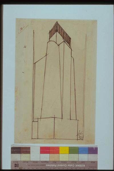 - NOTIZIE STORICO CRITICHE Il disegno fa parte della serie "dinamismi architettonici" chiamati così dal poeta futurista Escodamè in occasione della mostra da lui ordinata al Broletto di Como nel settembre-ottobre 1930. Si tratta di vere astrazioni grafiche, volumi senza una precisa destinazione, disegnati a solo contorno e assolutamente privi di decorazioni.