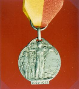 R: ALLEGORIA DELL'ITALIA, TOPICO TURCO; V: STEMMA DELLA MUNICIPALITA' DI BERGAMO. R: FIGURA MULIEBRE CON IN MANO UN RAMO D'ALLORO ED UNO DI PALMA, SULLO SFONDO UNA MOSCHEA CON MINARETO, A SINISTRA DUE MILITARI IN DIVISA COLONIALE; ISCRIZIONE; V: STELLA A CINQUE PUNTE, PALMA, STEMMA , ISCRIZIONE
