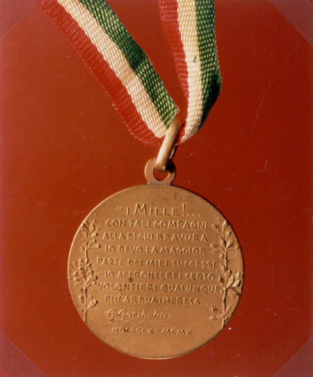 R: RITRATTO DI GIUSEPPE GARIBALDI. R: BUSTO VIRILE LEGGERMENTE SCORCIATO, ISCRIZIONE, V: RAMO D'ULIVO, RAMO DI QUERCIA, ISCRIZIONE