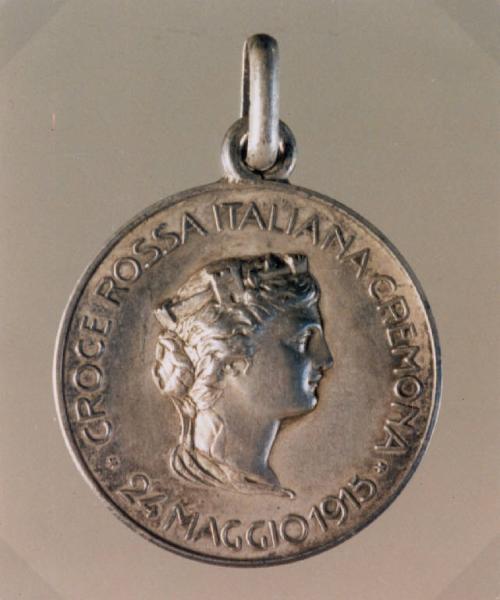 R: ALLEGORIA DELL'ITALIA; V: CROCE DI GINEVRA. R: TESTA FEMMINILE TURRITA, PROFILO DESTRO, ISCRIZIONE; V: CROCE ROSSA INSCRITTA IN UN CERCHIO, CARTIGLIO, RAMO DI QUERCIA E DI ALLORO, ISCRIZIONE