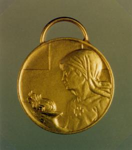 R: ALLEGORIA DELLA CARITA'; V: CROCE DI GINEVRA. R: FIGURA MULIEBRE A MEZZO BUSTO CHE REGGE UN LUME ACCESO, CROCE, ISCRIZIONE; V: CROCE, ISCRIZIONE