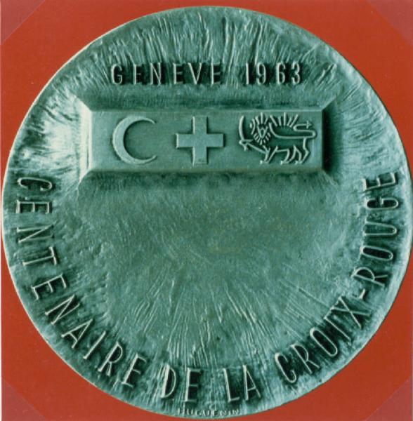 R: CROCE DI GINEVRA; V: SIMBOLI DELLA CROCE ROSSA INTERNAZIONALE. R: CROCE GRECA, ISCRIZIONE; V: MEZZALUNA RIVOLTA A DESTRA, CROCE GRECA, LEONE PASSANTE CON SCIMITARRA SOPRA A SOLE RAGGIATO
