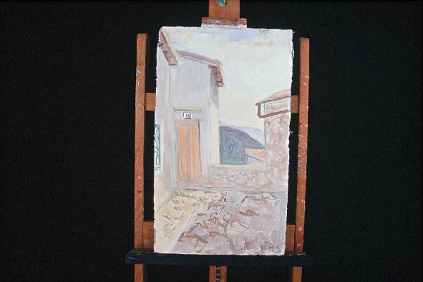 Affresco eseguito su formella di truciolato ricoperta di intonaco senza intelaiatura in legno.
