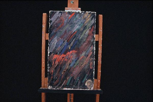 Affresco eseguito su formella di truciolato ricoperta di intonaco senza intelaiatura in legno.