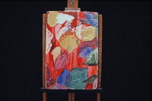 Affresco eseguito su formella di truciolato ricoperta di intonaco senza intelaiatura in legno.