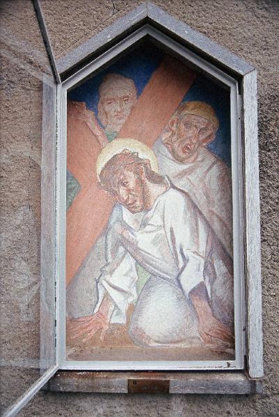 Gesù cade sotto la croce per la prima volta. Cristo cade sotto la croce