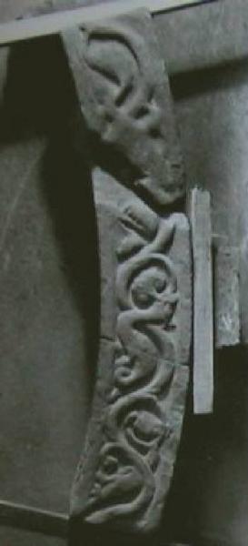 Frammento di ghiera con decorazioni vegetali e animali scolpiti.