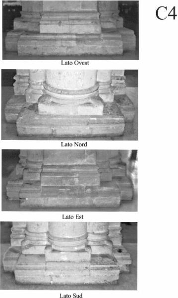 Base attica di sostegno con una zoccolatura a risega che segue l'andamento cruciforme, sormontato dal plinto, dal toro inferiore, dalla scozia tra due listelli, e dal toro superiore. Sono presenti unghie protezionali di cui non è possibile identificare il motivo decorativo.