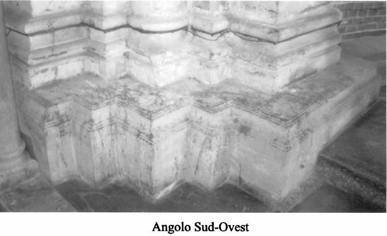 Base attica di sostegno definita da una scozia, due tori e dal plinto. Fra il plinto e il toro inferiore si nota una protome mostruosa.