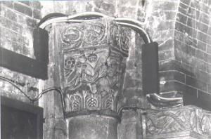 Motivi decorativi vegetali stilizzati (semicapitello corinzio) - ambito pavese (prima metà sec. XII)