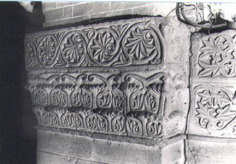 Motivi decorativi vegetali stilizzati (semicapitello corinzio) - ambito pavese (prima metà sec. XII)