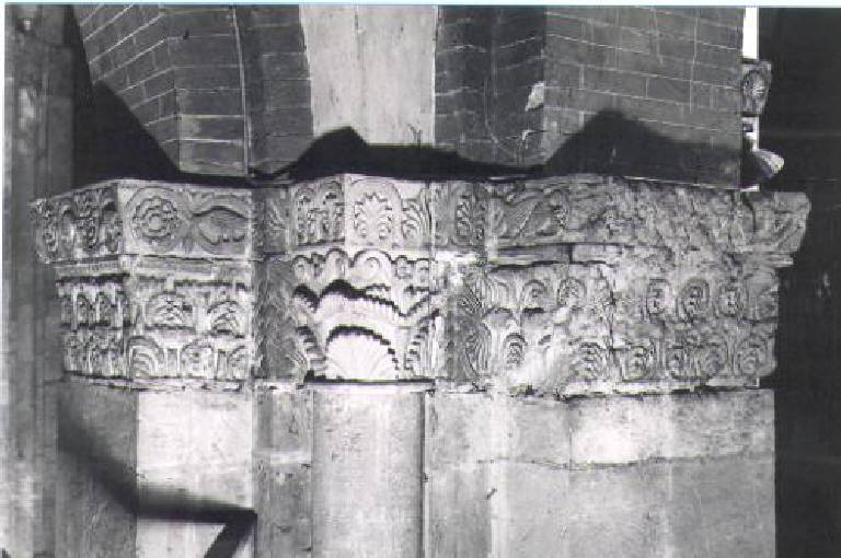 Motivi decorativi vegetali stilizzati (semicapitello corinzio) - ambito pavese (prima metà sec. XII)