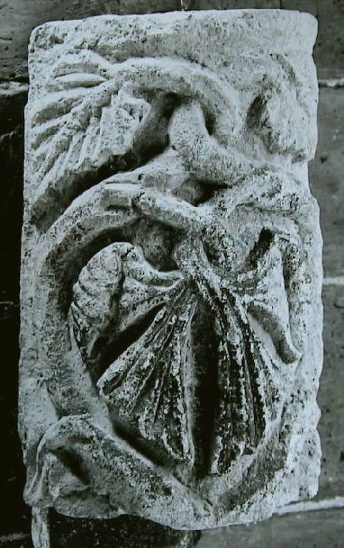 Stipite con cordonatura scolpita a rilievo.