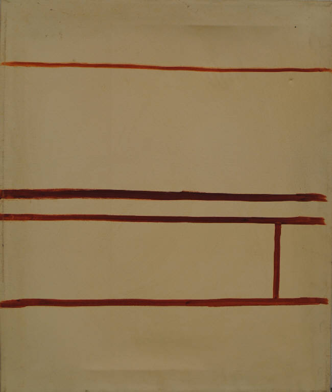 Su un fondo bianco si dispongono parallelamente quattro segmenti rossi a differenti distanze. I due segmenti inferiori sono uniti da un più breve segmento posto ortogonalmente.