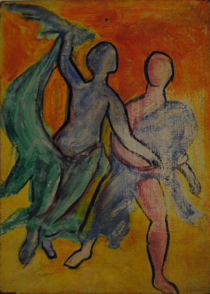 L'opera ritrae due figure umane, una blu, l'altra rosa, mentre danzano su fondo giallo-rosso, muovendo dei drappi.