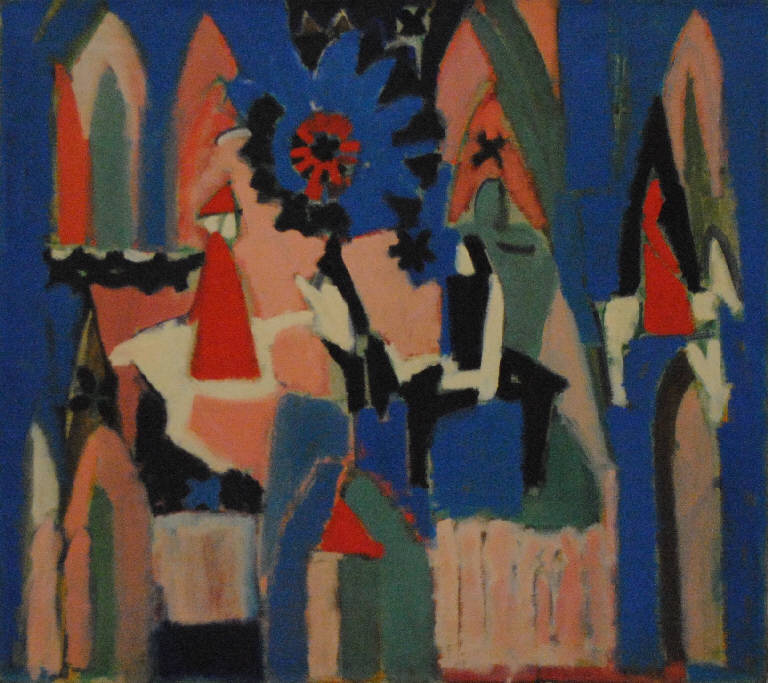 Composizione articolata in una serie di elementi decorativi riconducibili alla Cattedrale di Strasburgo.