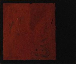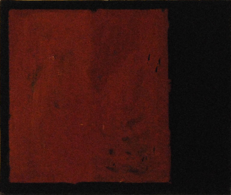 Intorno al perimetro dell'opera è presente un nastro adesivo di carta che funge da rudimentale cornice. Composizione d'invenzione, riconducibile alla soluzioni pittoriche del Suprematismo russo, articolata in un quadrato rosso su fondo nero.