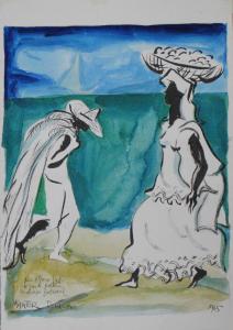 L'opera rappresenta una spiaggia su cui camminano, in direzione opposta, un uomo che trascina una rete da pesca e una donna con un cesto di frutta sulla testa.