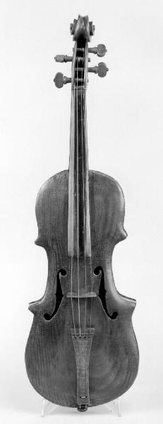 È uno strumento piccolo (paragonabile al violino 3/4) con il corpo di forma snella ed effe allungate e spigolose. Il modello e la lavorazione denotano chiaramente la sua origine popolare. Il fondo è in un solo pezzo di noce, con le fasce del medesimo legno. La tavola è in un pezzo unico di abete a taglio tangenziale. La testa è in pero innestata sul manico in faggio. La chiocciola della testa ha un intaglio molto sottosquadrato e una sola scanalatura dorsale. I tasselli interni sono in pioppo e non c'è traccia di controfasce; non ci sono filetti, né sulla tavola, né sul fondo. La vernice è di color marrone chiaro. Lo strumento monta quattro corde. Non è presente alcuna etichetta.