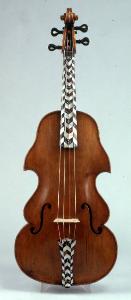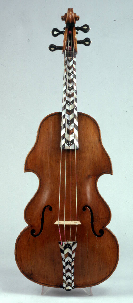 La forma dello strumento si può ricondurre ai modelli in uso nel XVI° sec. in area lombarda (vedi: viola da gamba di Pellegrino De Micheli,1547, Museo del Conservatorio di Parigi, in seguito riutilizzati per le violette e le viole da gamba inglesi dei secc. XVII° e XVIII° (vedi: viola da gamba attribuita a John Rose, circa 1600, Ashmolean Museum di Oxford) e nel XIX° sec. da alcuni autori bavaresi. Il lavoro è molto preciso ed elegante. Il fondo (che ha uno spessore che va da 1,5 mm a 3,6 mm) è in un solo pezzo di pioppo a taglio tangenziale. Le fasce (con uno spessore irregolare da 0,8 mm a 1,8 mm) sono dello stesso tipo di legno. La tavola è in due pezzi di abete a venatura regolare con due piccoli nodi, nelle parti superiore destra ed inferiore sinistra. L'altezza della bombatura della tavola è di mm 19 e lo spessore va da mm 1,2 a mm 2,5. La testa ed il manico, completamente originale, sono in acero. Sul dorso della testa sono presenti due fori perfettamente circolari di 7,5 mm circa di diametro chiusi con due perni di acero. Il tassello interno superiore è in abete a venatura orizzontale ; questo particolare si trova sovente nella scuola milanese e in particolar modo negli strumenti costruiti dai membri della famiglia Testore. Il tassello interno inferiore è in abete.