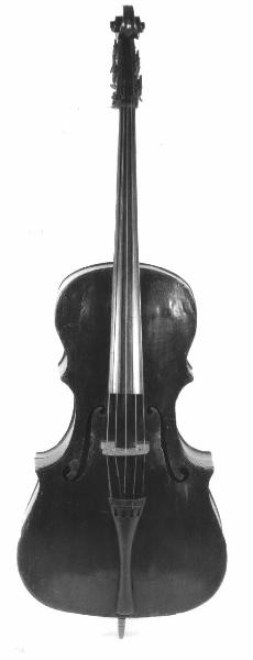 É un tipico esempio di bassetto da processione: le sue piccole dimensioni consentivano di trasportalo agevolmente appeso al collo del suonatore, con una cinghia fissata ad un chiodo sagomato; un chiodo di questo tipo è ancora presente nella parte superiore del fondo, in corrispondenza del tassello. Con buone probabilità, anche se non con assoluta certezza, lo strumento può essere localizzato nell'area lombardo-veneta: si possono trovare molti esemplari simili di quella zona (si possono citare i bassetti a tre corde usati nelle manifestazioni tradizionali per il carnevale a Bagolino e Ponte Caffaro, in provincia di Brescia). Inoltre alcune caratteristiche costruttive permettono di assimilarlo a lavori di liutai di quell'area. Le punte sono molto lunghe e sporgenti. Lo strumento ha controfasce sagomate, anche esterne alla cassa. Il fondo è piatto, con un angolo superiore posizionato a cm 73 circa misurati dalla parte bassa. Tutta la cassa del bassetto è costruita in cipresso. I fori armonici, con un taglio molto strombato, sono molto stretti e svolazzanti, e ricordano i modelli usati nei contrabbassi della famiglia Grancino di Milano. La testa è probabilmente in pioppo. Monta meccaniche metalliche avvitate alle ganasce ed il manico è trattenuto alla cassa da una vite.
