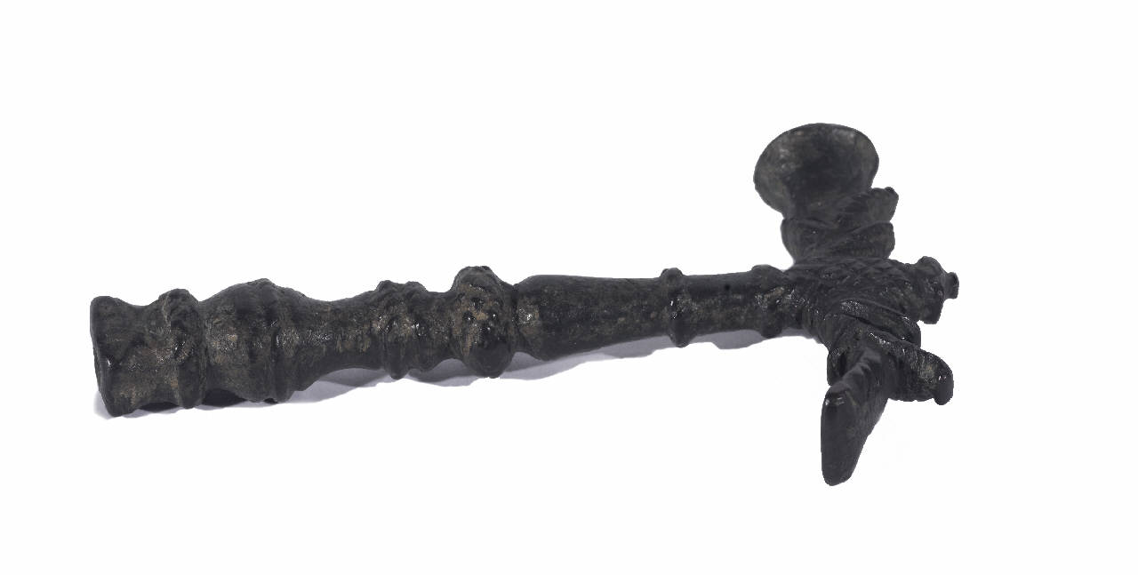 Chiave per accordatura in ferro rinvenuta in una cassetta generica di chiavi nel magazzino del Museo. Gallini aveva catalogato come "gruppo di chiavi per accordatura" una serie di oggetti dei quali uno solo era una chave, inserita nel catalogo. Gli altri oggetti erano chiavi di carica per archibugi. Non semrerebbe che questa chiave fosse inserita tra quelle provenienti dalla Raccolta Gallini, esaminate a suo tempo (1997) da un esperto e conservate poi con le armi.