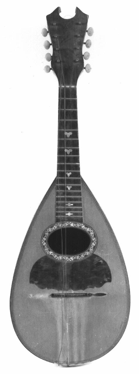 E¿ un tipico mandolino di area napoletana; non vi sono dubbi sull'autenticità del cartiglio, né sull'anno di costruzione. Nella seconda metà dell'`800 la famiglia artigiana Vinaccia ha prodotto numerosi mandolini e questo ne è un esempio. E¿ un tipico mandolino di area napoletana; non vi sono dubbi sull'autenticità del cartiglio, né sull'anno di costruzione. Nella seconda metà dell'`800 la famiglia artigiana Vinaccia ha prodotto numerosi mandolini e questo ne è un esempio. La tavola armonica è interamente contornata da una filettatura e vi è la presenza del battipenna e della buca, adornata da decorazioni madreperlacee; nel ponticello manca un¿estremità. Il guscio è composto da ventinove doghe in palissandro, intercalate da filetti chiari e la parte interna è completamente incartata, come di consueto. Il manico è impiallacciato con palissandro e la tastiera, in ebano, è divisa da diciassette tasti con segnatasti al 5° , 7°, 10°, 12° , 15° e 17° tasto.