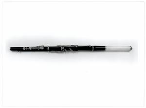 Questo strumento presenta la chiave corta del Sol# obliqua, come nel flauto sistema Meyer. 11 chiavi d'alpacca, queste ultime imperniate su supporti metallici (Si, Do, Do# aperte. Mib, Fa, Fa lunga, 2 Sol# per PS e MS, Sib a doppia azione per PS e IV, Do, Mi).