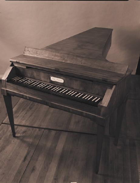 Cassa e sostegno\nLo strumento ha sagoma a forma d'ala, con angolo di coda di circa 90° e spallette della tastiera oblique. I fianchi sono incollati contro i bordi del fondo.\nLe quattro gambe, rastremate a sezione quadrata,sono avvitate ad altrettanti capitelli solidali alla cassa.\nIl pianoforte è fornito di coperchio con ribalta e di un portello per la tastiera: tutti incernierati insieme; il coperchio, a sua volta è incernierato alla cassa. \nLo strumento e le sue gambe sono lastronati in ciliegio. Il fondo è d'abete.\n\nTavola armonica e somiere \nLa tavola armonica è d'abete, il somiere è lastronato in acero. Il ponticello della tavola armonica, d'acero, è in un unico pezzo. \nLe caviglie di ferro hanno testa oblunga. Vi sono contro-punte sul ponticello della tavola armonica in tutto l'ambito.\nLe corde presenti sullo strumento sono di ferro da do#1 a fa6, d'ottone da fa0 a do1. \nLo strumento è bicorde da fa0 a sib3, tricorde da si3 a fa6. \n\nTastiera\nLa tastiera, di 73 note.
