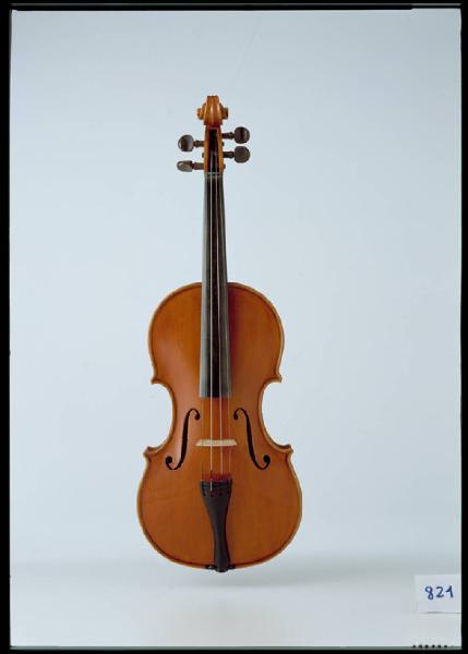 Lavoro tipico del periodo bellico, durante il quale il laboratorio venne distrutto per ben tre volte dai bombardamenti. Lo strumento, pur essendo eseguito in modo corretto e pulito é piuttosto impersonale. All'interno etichetta a stampa: "PAOLO DE BABIERI - GENOVA/ (firma) / FECE nell'anno 1941" le ultime due cifre dell'anno sono manoscritte. Tre marchi "G:DE BARBIERI - GENOVA" si trovano rispettivamente vicino all'anima, sull'angolo superiore destro dell'etichetta e sotto il bottone di attacco della cordiera sulle fasce.Il modello è un mediocre rifacimento dal "cannone" di Guarneri del Gesù. La tavola è in abete in due metà speculari di abete a venatura media e regolare, il fondo è in un pezzo unico di acero a marezzatura larga e irregolare, così come pure le fasce. Il riccio è in acero, piuttosto grosso con svolgimento regolare. I fori armonici hanno le pareti non verniciate, particolare tipico di questo autore. La vernice, mal distribuita, è aranciata con riflessi rosati.