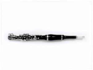 Flagioletto, 5 pezzi, meccanica di derivazione Boehm. Ebano, con ghiere e meccanica di alpacca e becco di avorio. Meccanica moderna di derivazione Boehm con chiavi ad anello. Labio ricoperto da lamina d'argento.